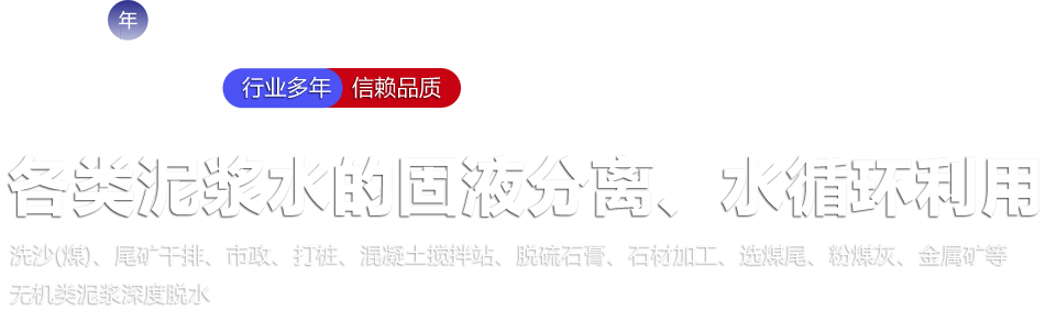 - 洗沙、洗煤、洗礦、打樁、隧道、河道清淤、脫硫石膏、石材加工、金屬礦、尾礦干排等。